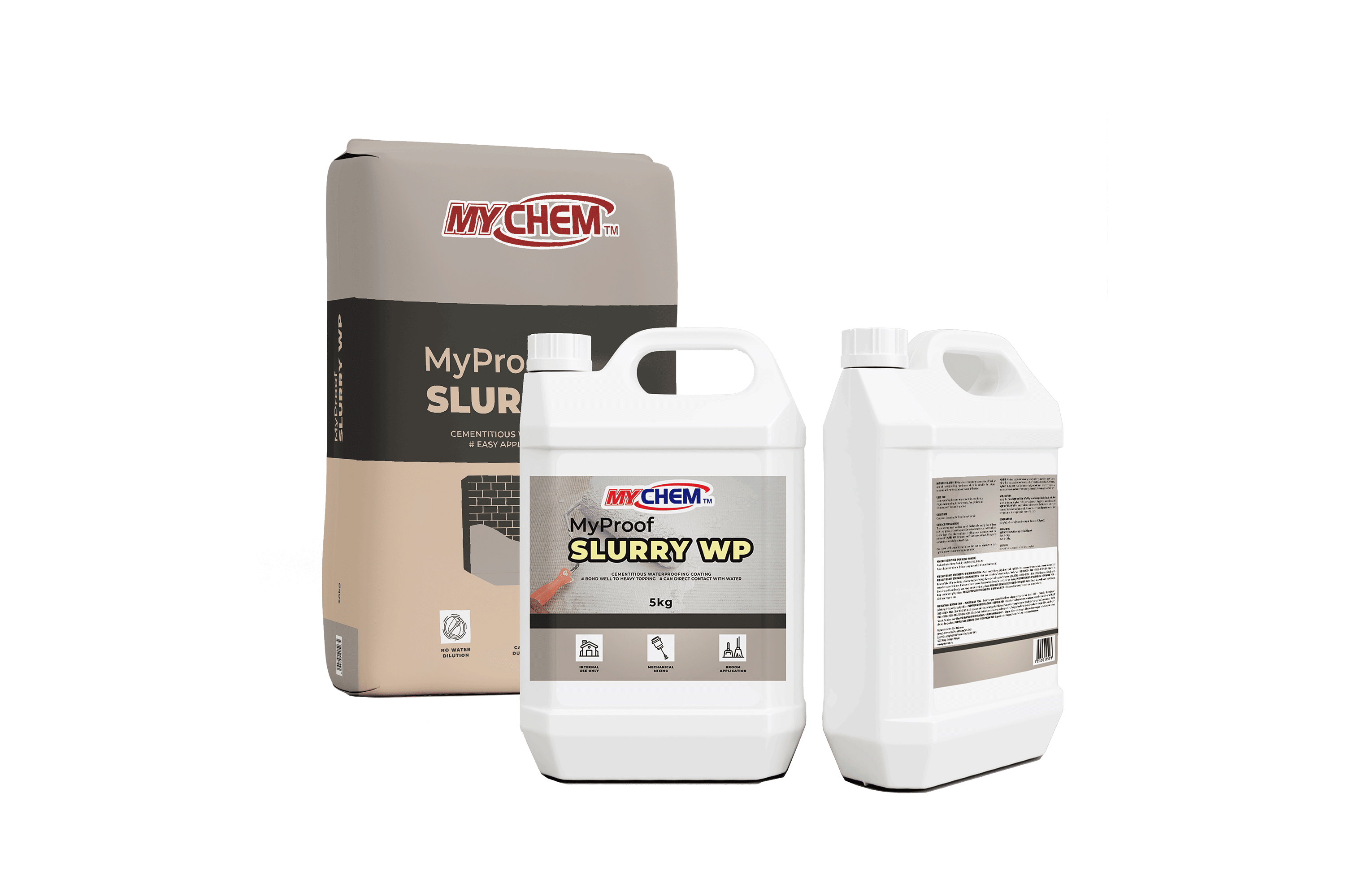 MyProof Slurry WP is a two-component cementitious brush on applied waterproofing membrane which is suitable for internal concrete and mortar to prevent water infiltration.